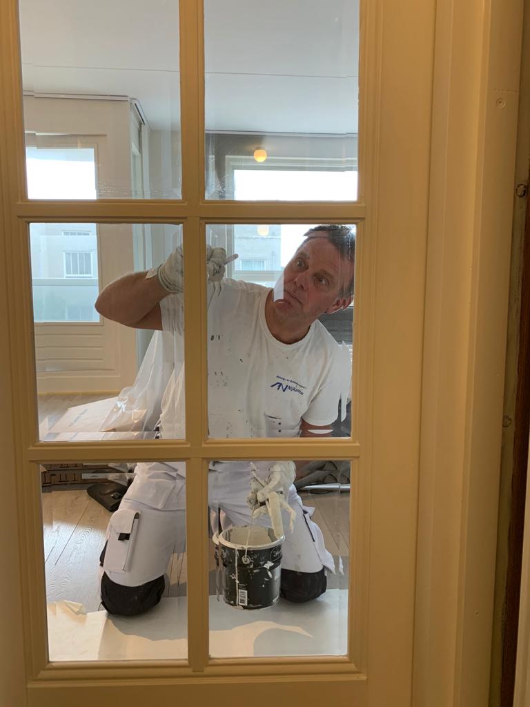 Binnenschilderwerk van bestaand houtwerk heeft een vast werkpatroon. Eerst wordt alles goed schoon gewassen(ontvetten). Vervolgens gaan we de losse verflagen verwijderen en het geheel machinaal schuren (stofvrij). Daarna brengen we een grondlaag aan en wordt er daar waar nodig is geplamuurd en worden de naden dicht gekit. Hierna gaan we voorlakken en als deze laag droog is wordt het geheel in de door u gewenste kleur afgeschilderd. Bij het kiezen van de kleuren kunnen we u ook weer adviseren.